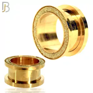 PL33G – Gold Plated Surgical Steel Tunnel Sandpaper Top Design Screw On Plugs