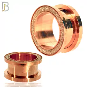 PL33R – Rose Gold Plated Surgical Steel Tunnel Sandpaper Top Design Screw On Plugs