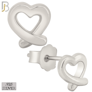 ES433 – Push Back – .925 Sterling Silver Plain Hollow Overlapping Ends Heart Earrings Stud