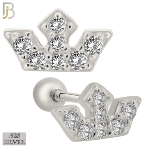 ES434 – Screw Ball Back – .925 Sterling Silver Three Point Crown with Multi Zircon Earrings Stud