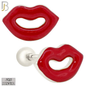 ES427 – Screw Ball Back – .925 Sterling Silver Red Enamel Lips Earrings Stud Earrings