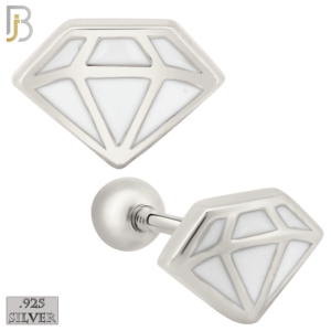 ES428 – Screw Ball Back – .925 Sterling Silver White Enamel Diamond Design Earrings Stud
