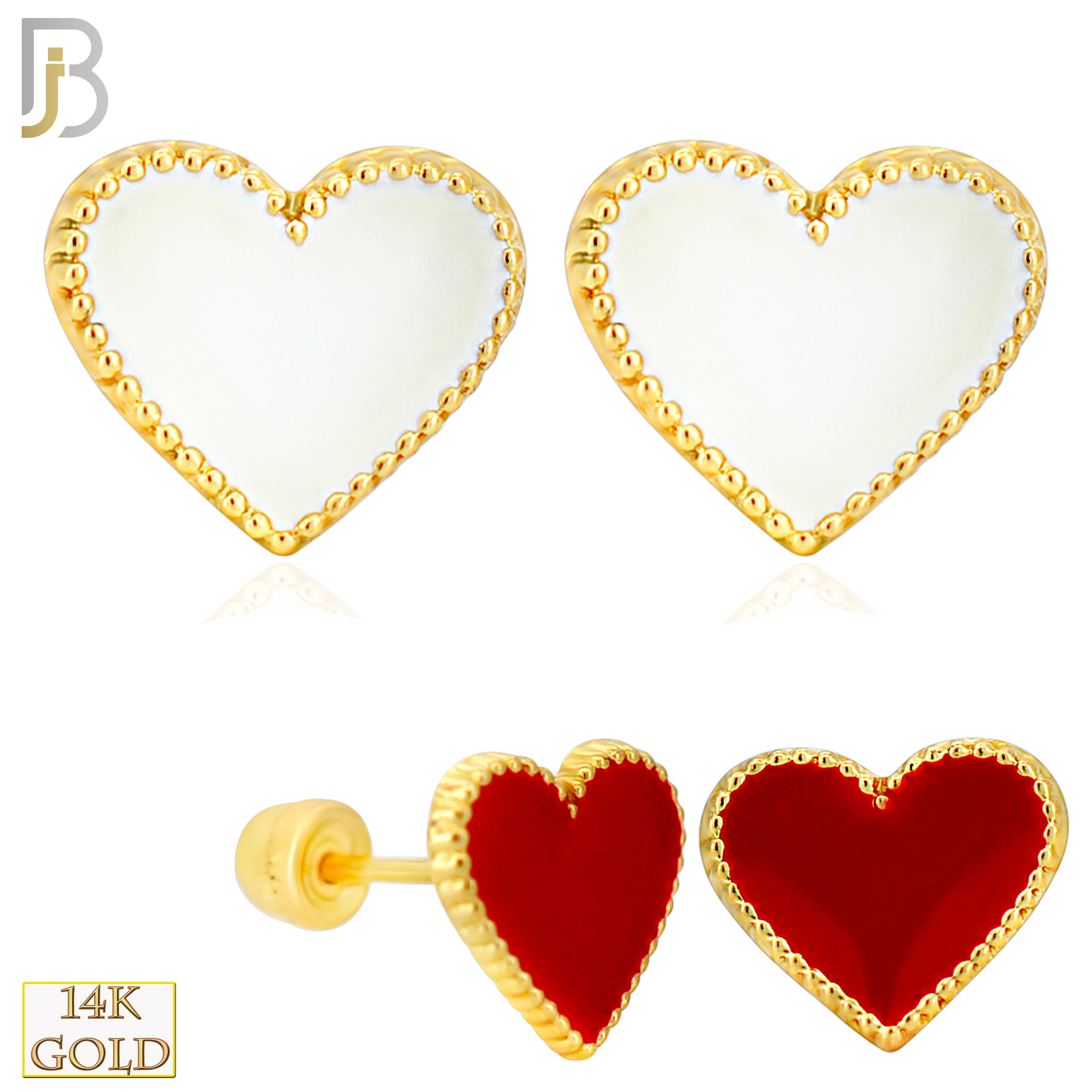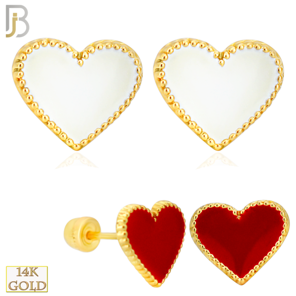 14-ES251 – 14k Yellow Gold Enamel Heart Earrings with Screw Backing