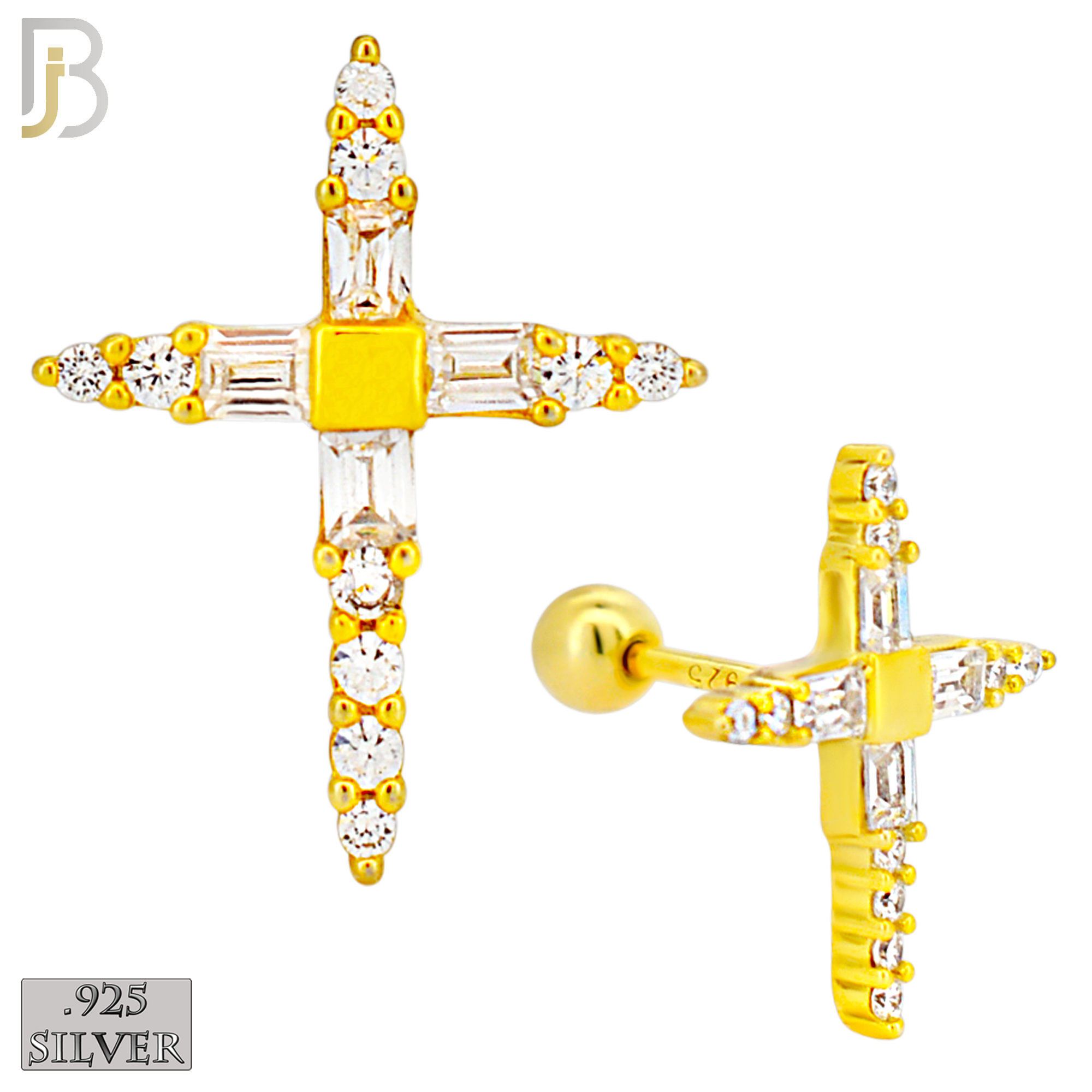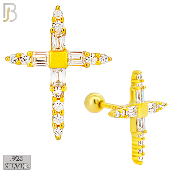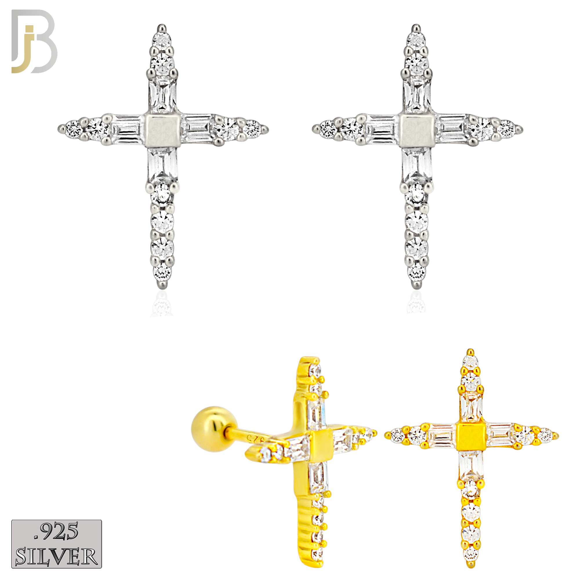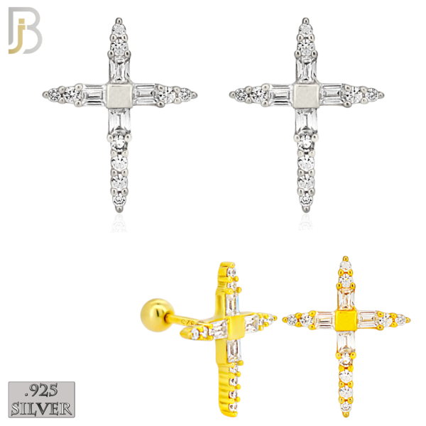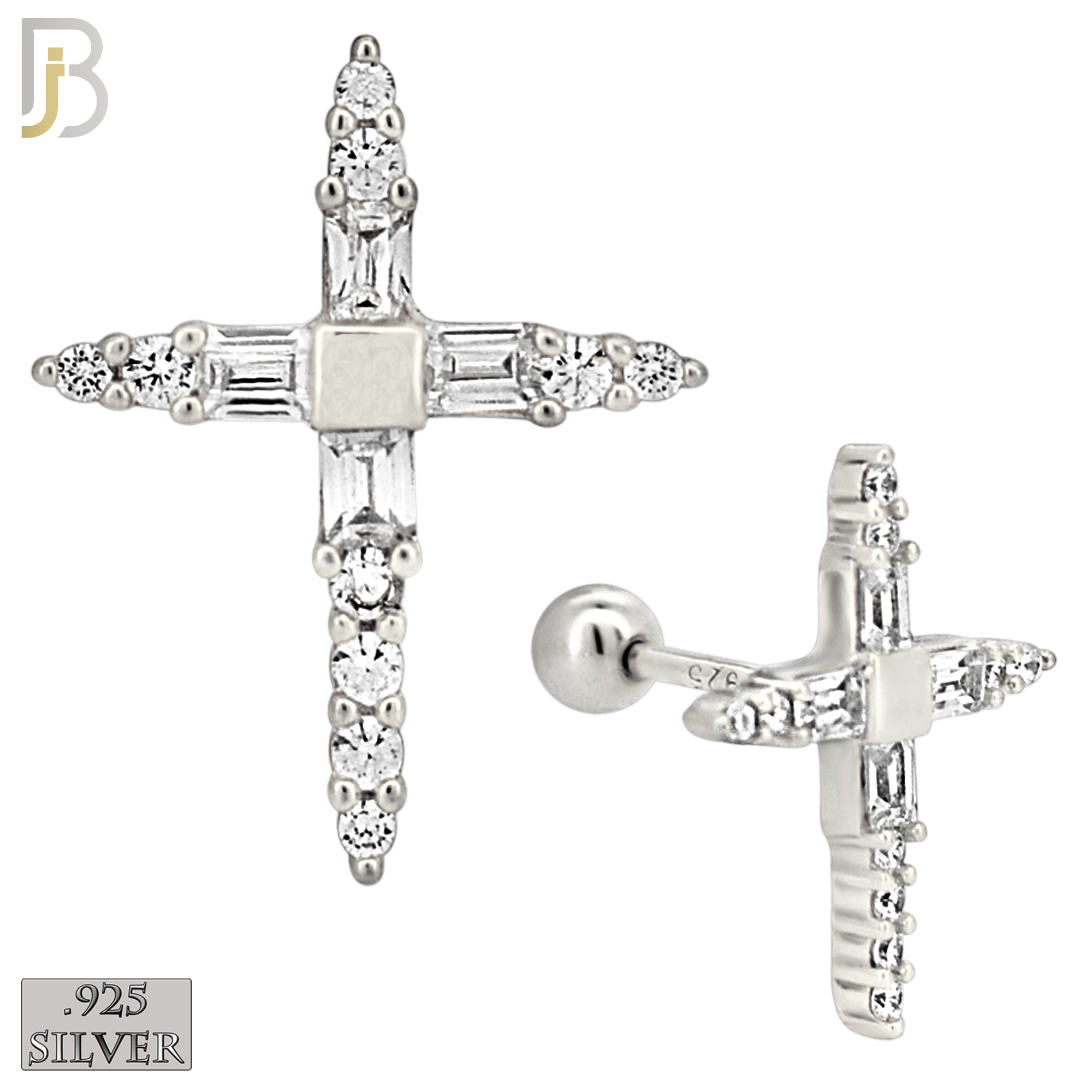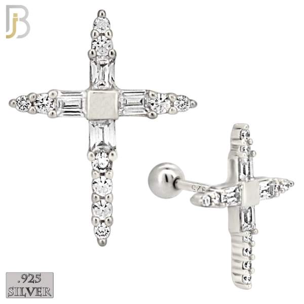 925-ES270-B – .925 Sterling Silver Pointed Cross with Zircon Design Earrings Screw Ball