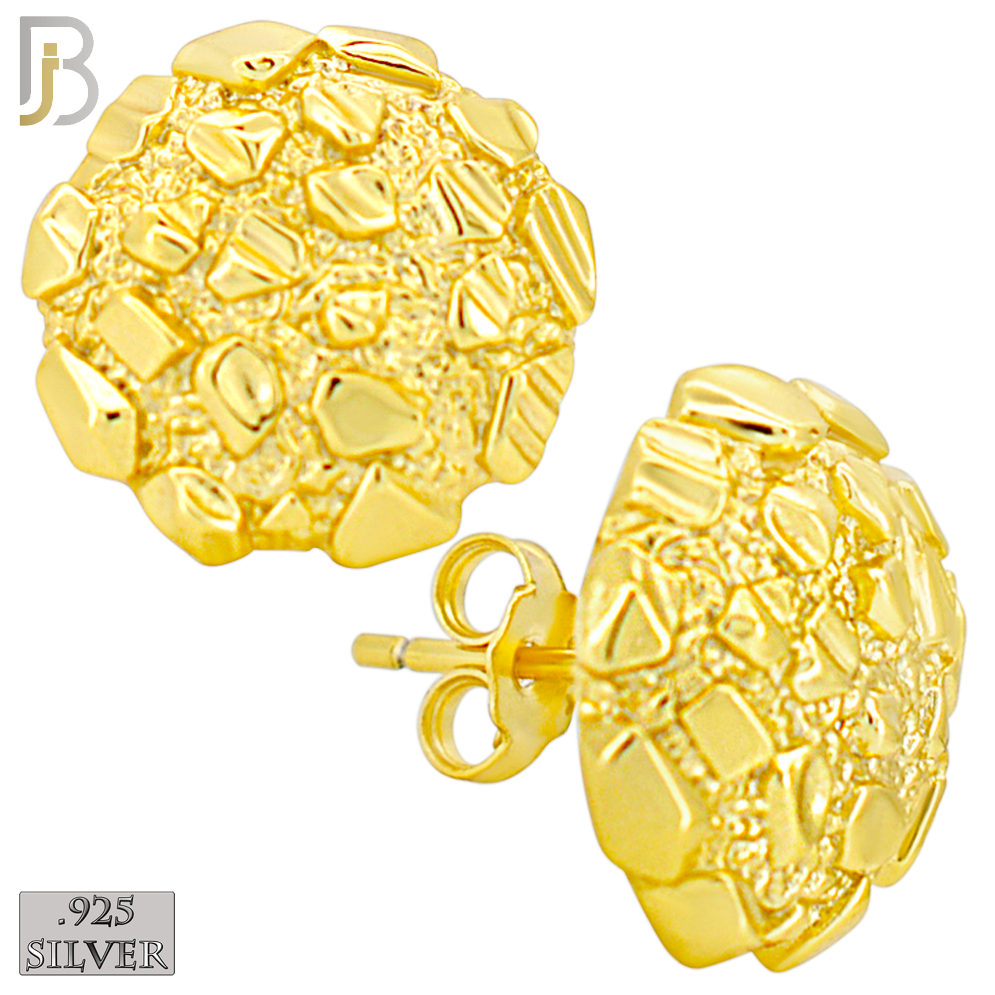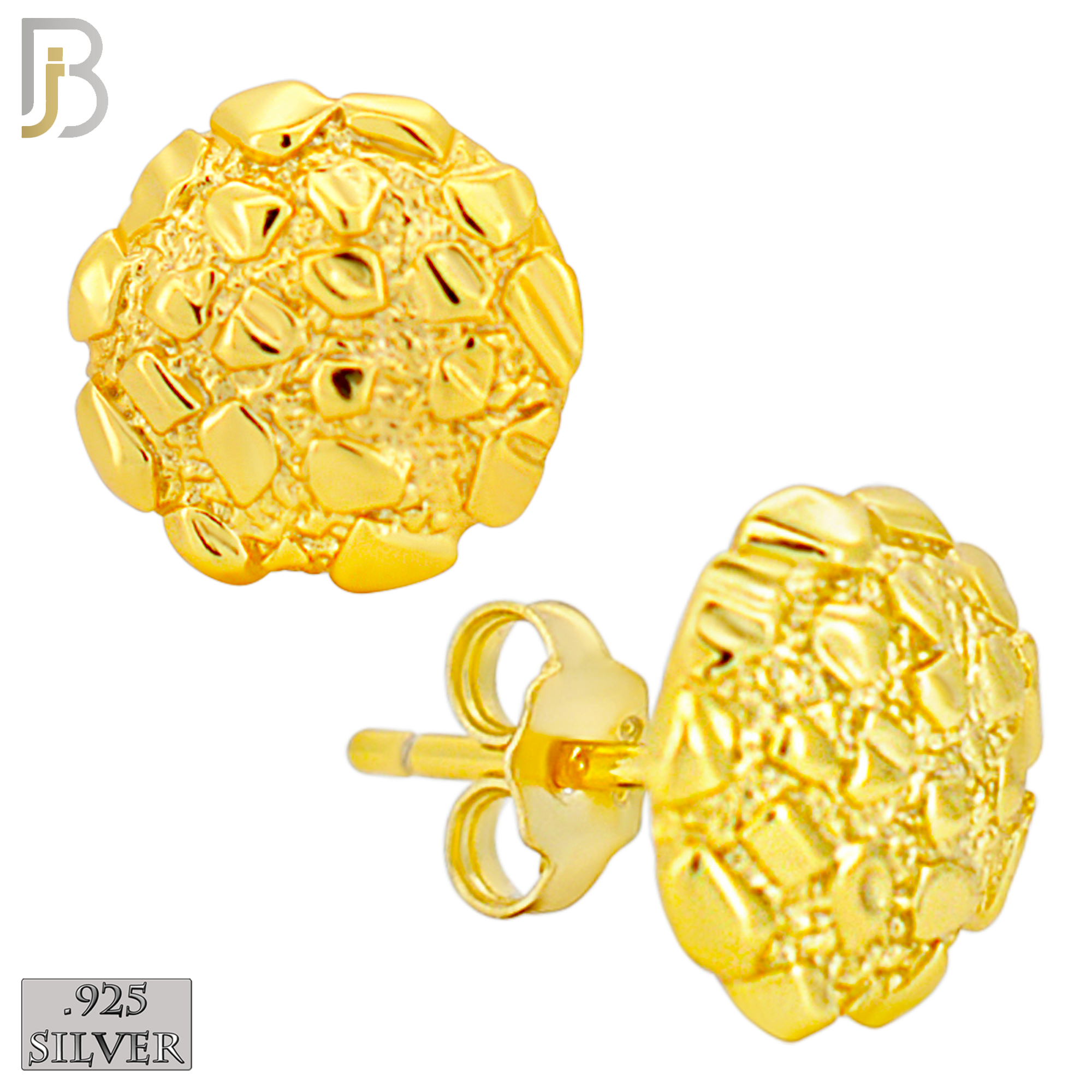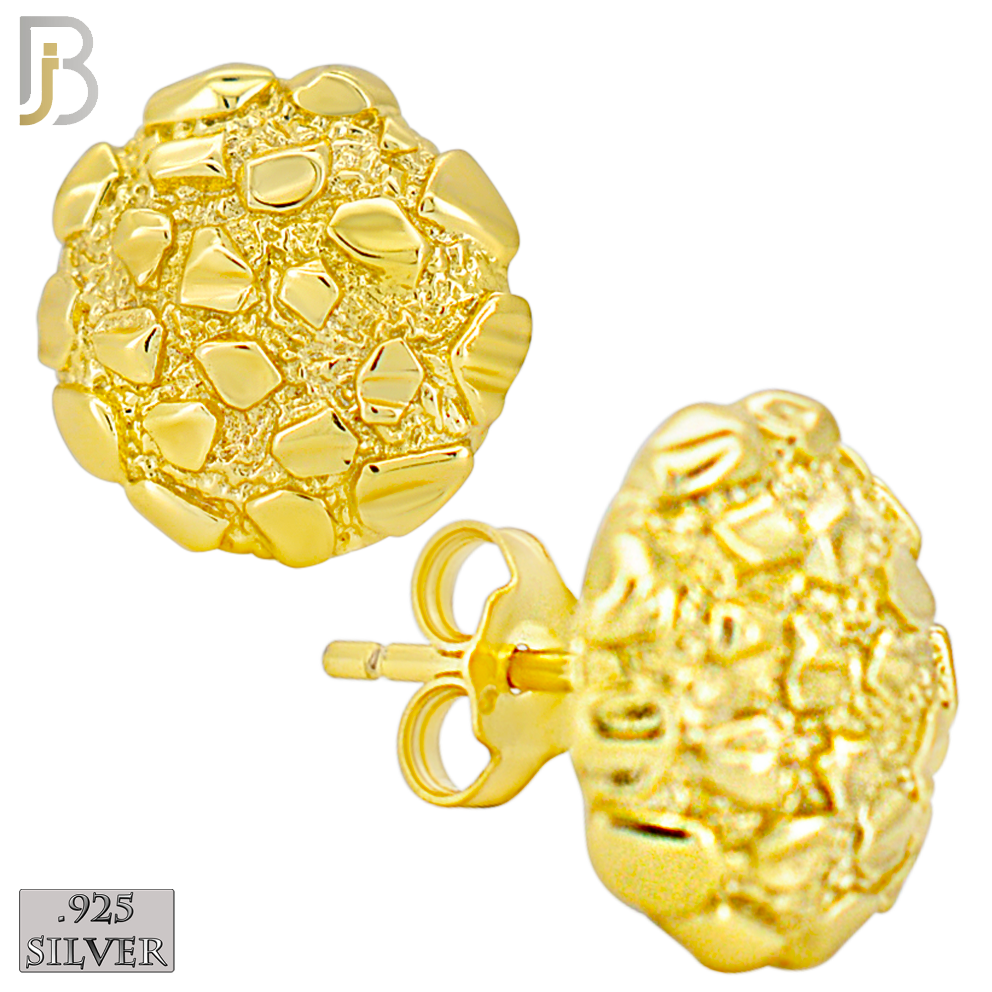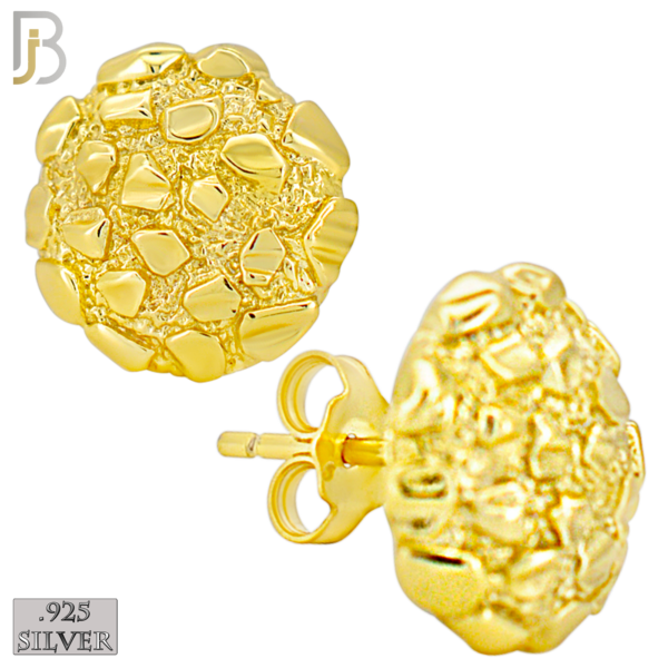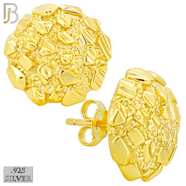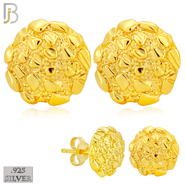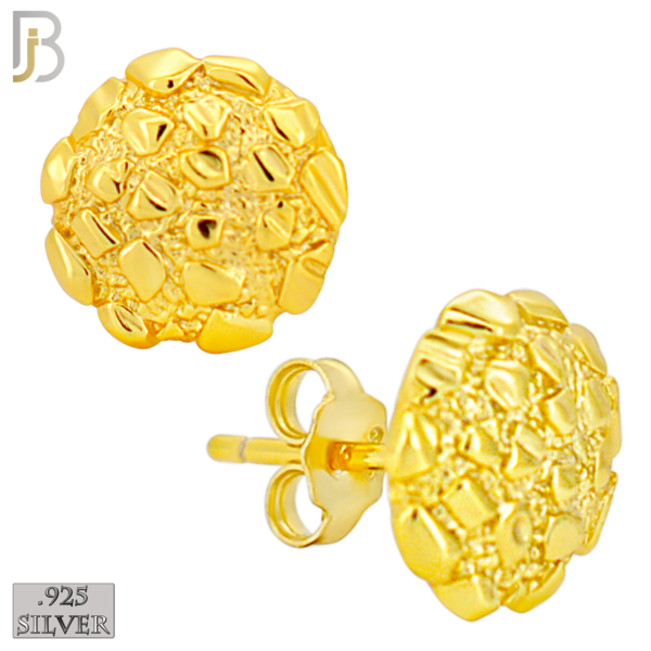925-ES513 – 925 Sterling Silver in Gold Plating Round Nuggets Push Back Earrings