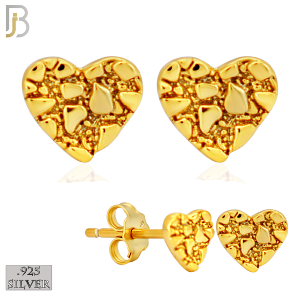 925-ES515 – 925 Sterling Silver Heart Nugget Push Back Earrings