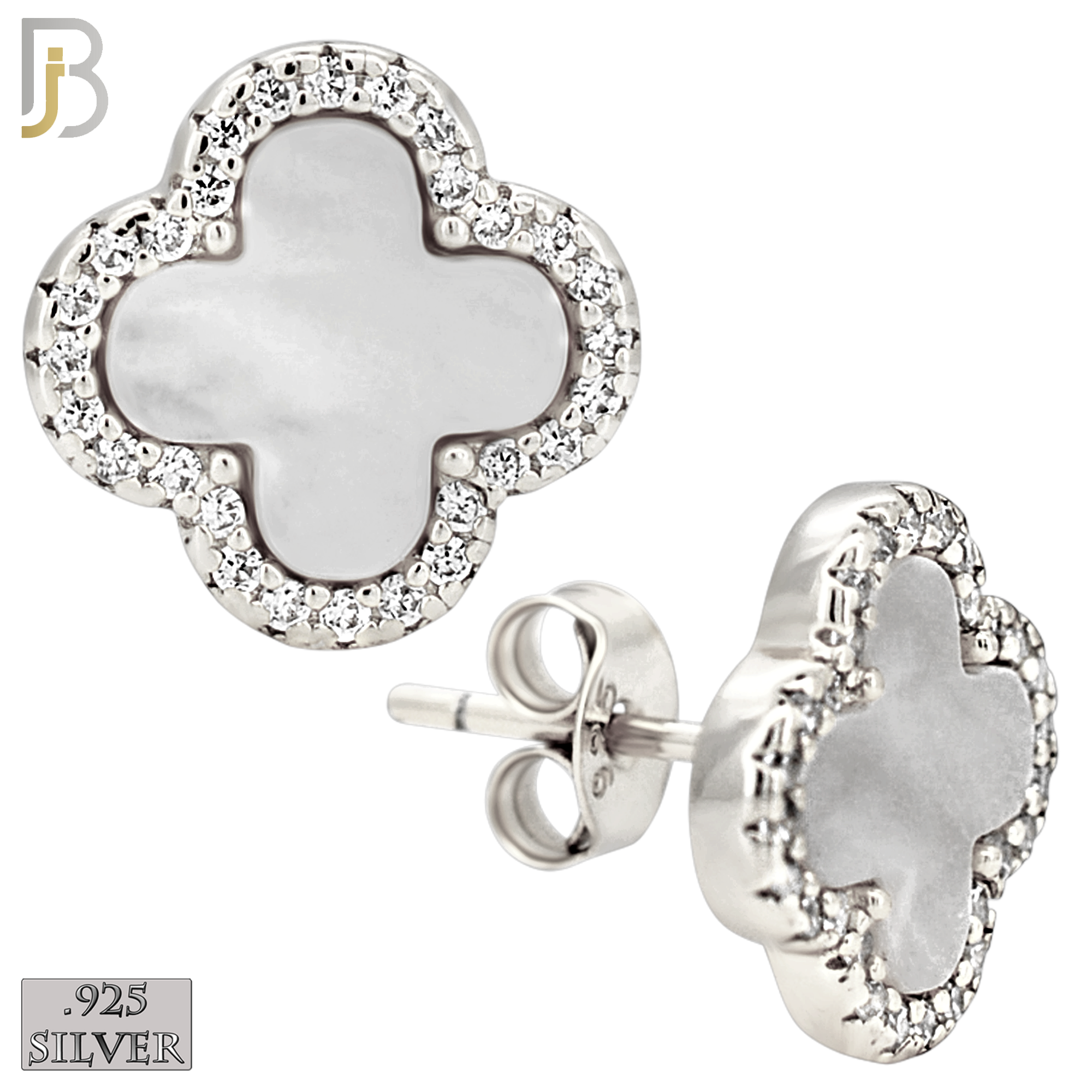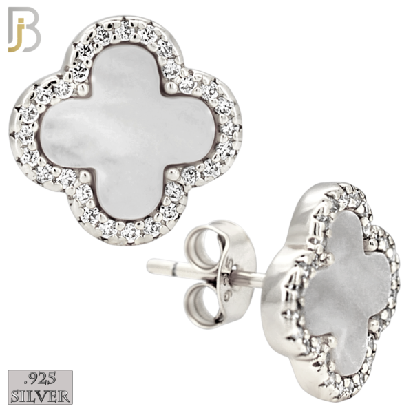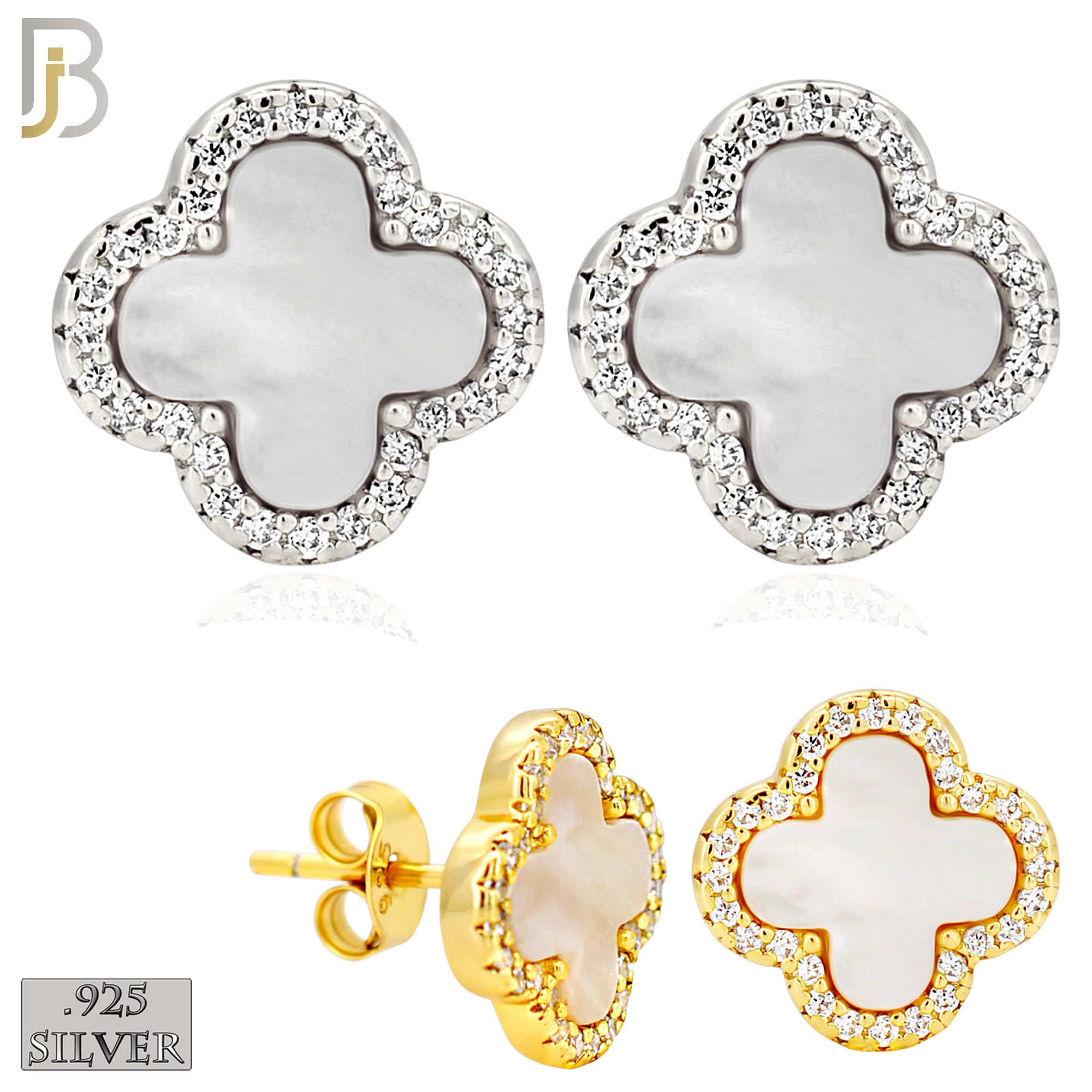 925-ES521 – 925 Sterling Silver Clover Stud Earrings with CZ