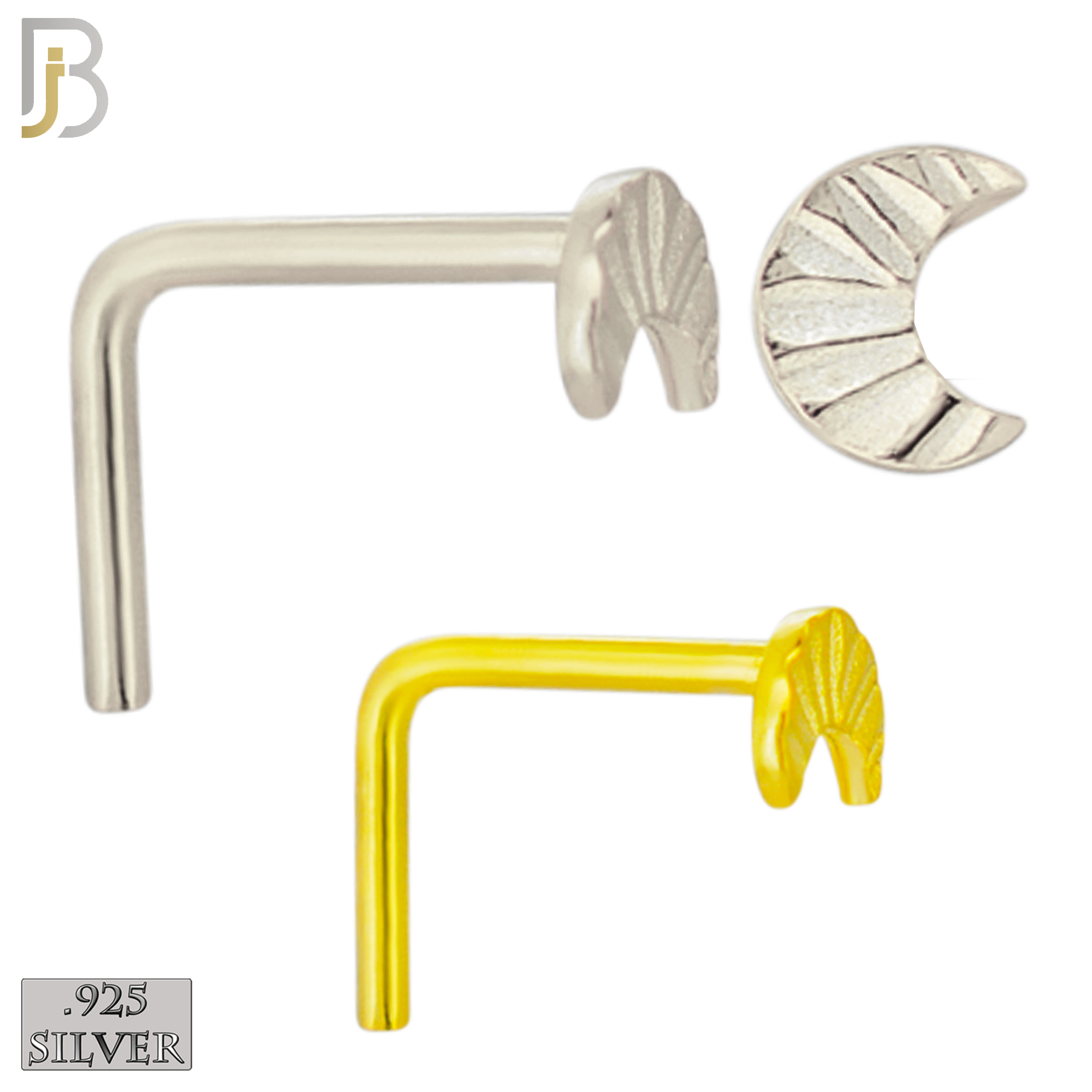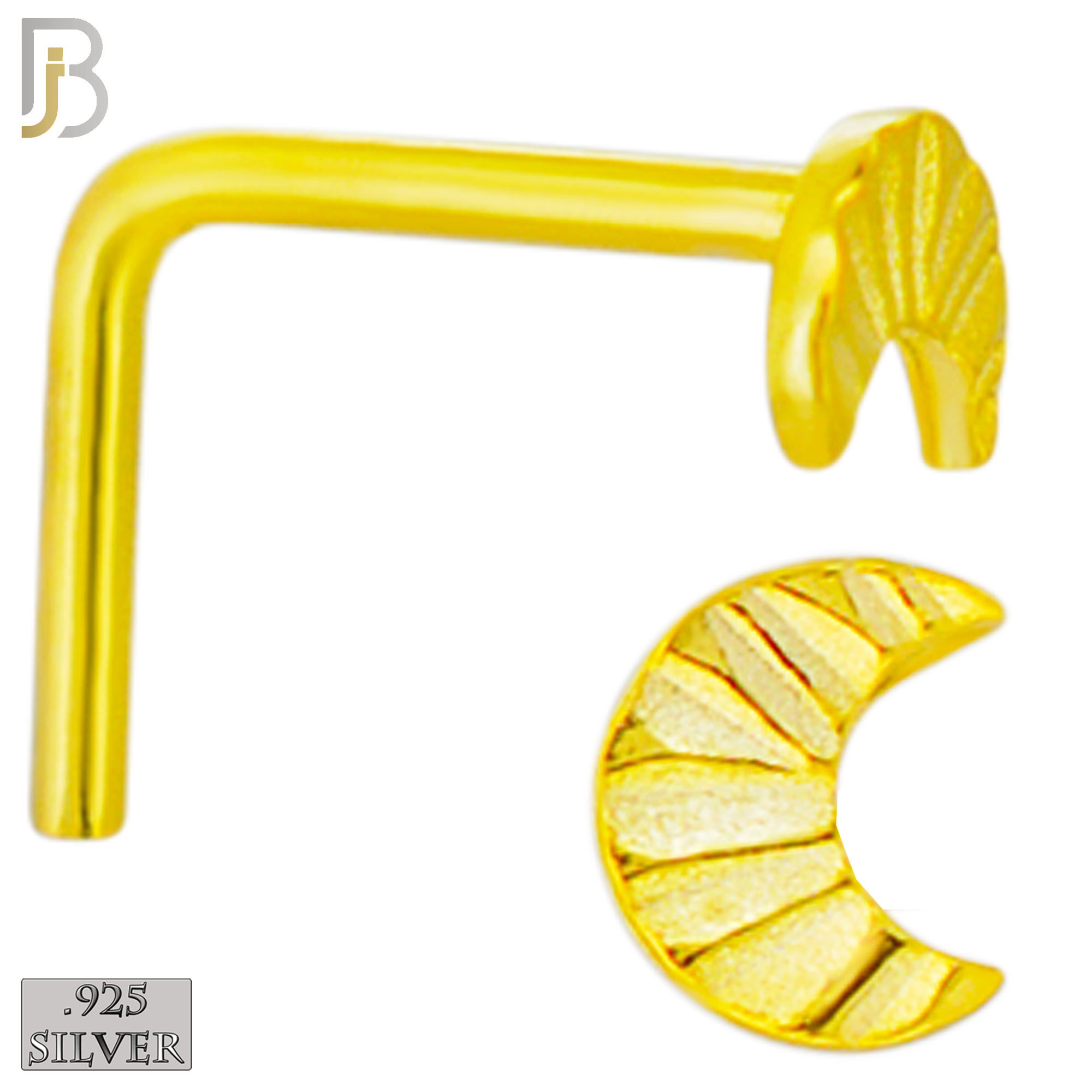925 Sterling Silver Crescent Moon Design L Shape Nose Ring (3 Yellow Gold , 3 Rhodium) (Pack of 6)