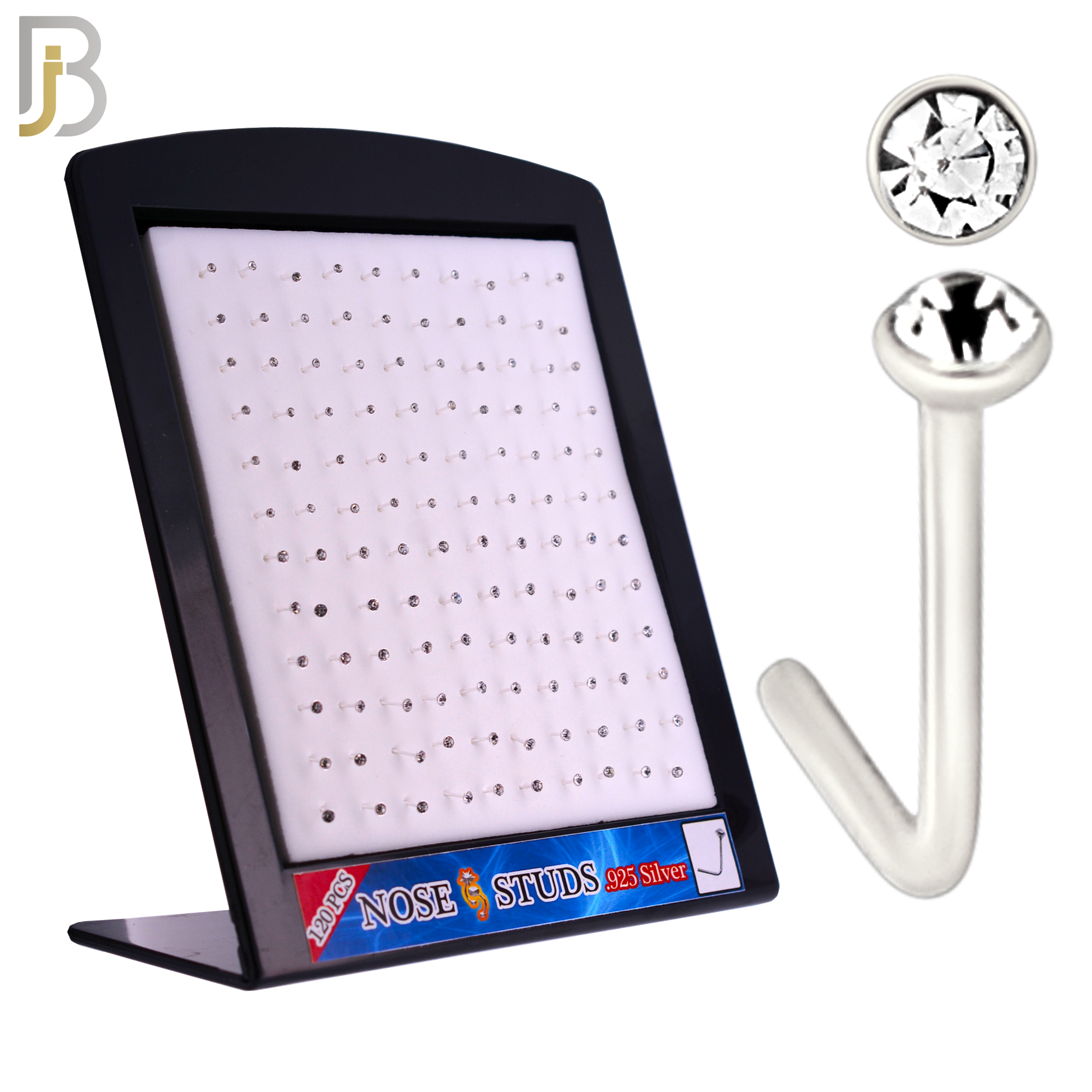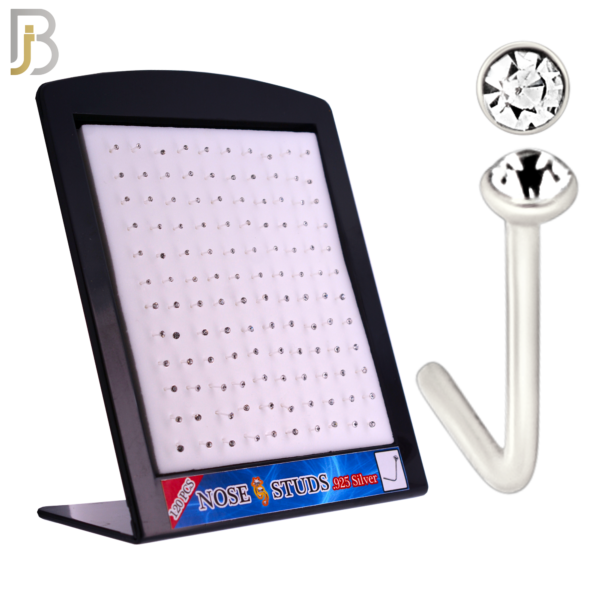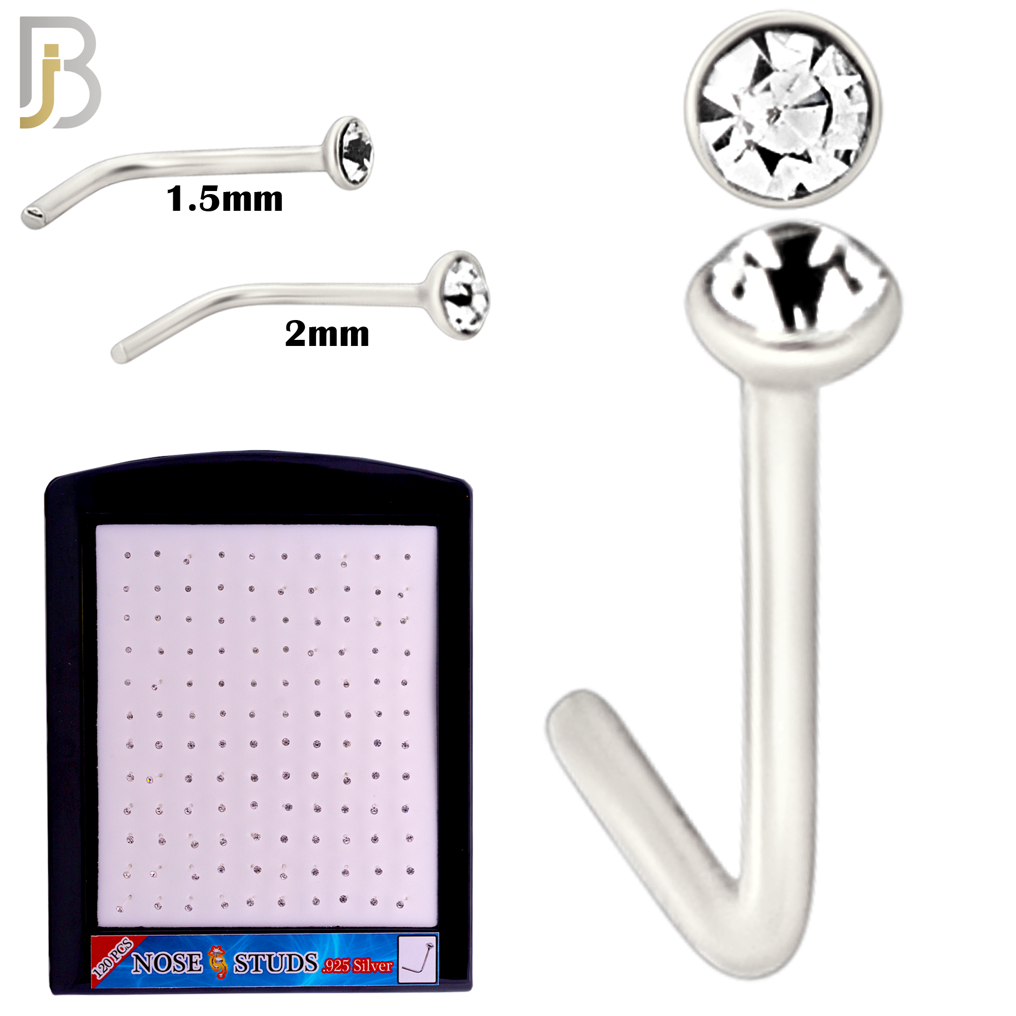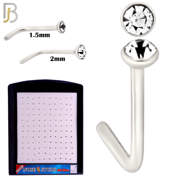 Mixed of 1.5mm, 2mm Clear CZ 22g Thickness 925 Sterling Silver Nose Studs, L-Shape Press Fit Packages Pack of 120.