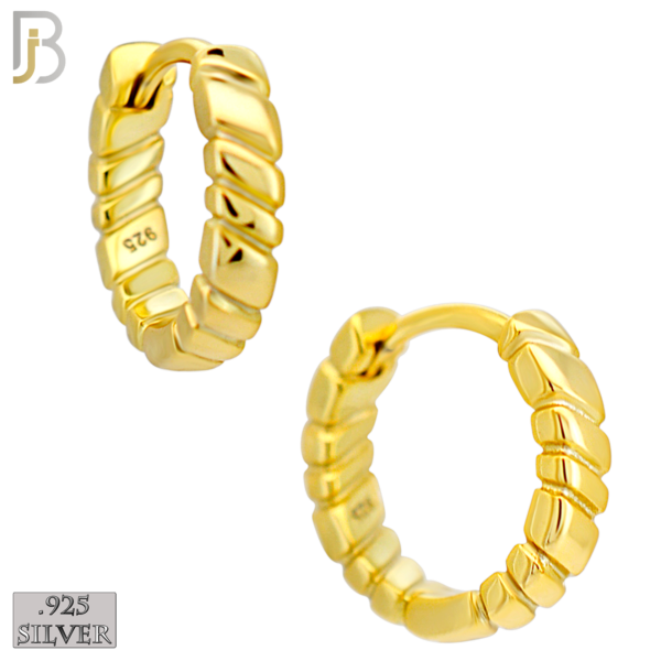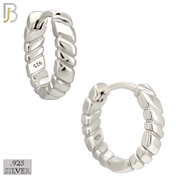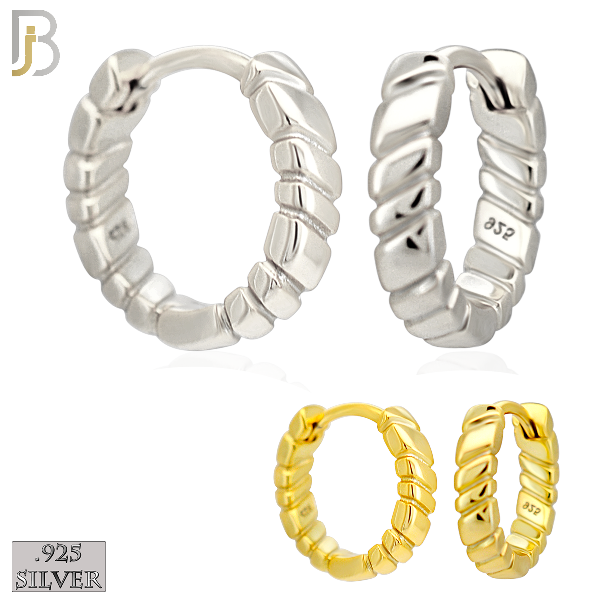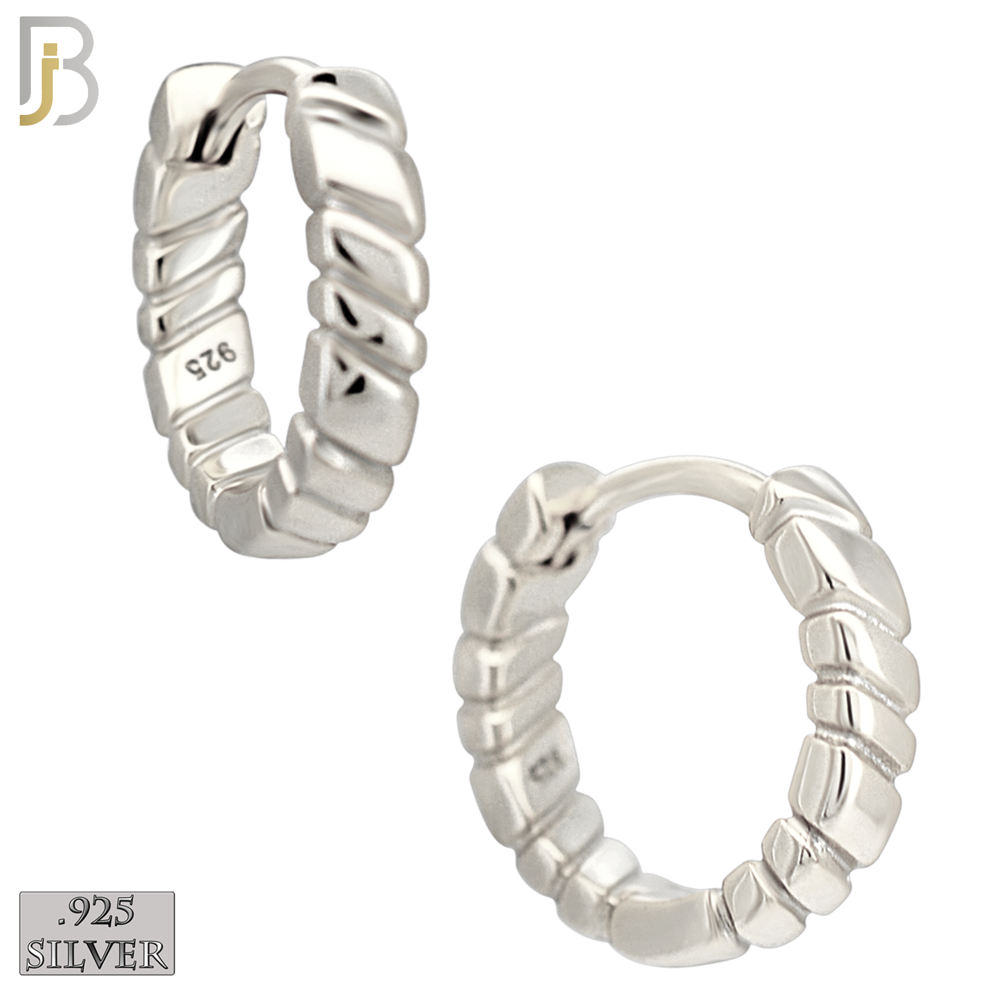 ES455 – 925 Sterling Silver Plain Carved Lines Edge Huggies Hoop Earrings