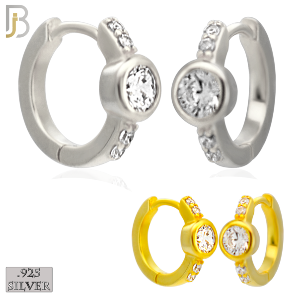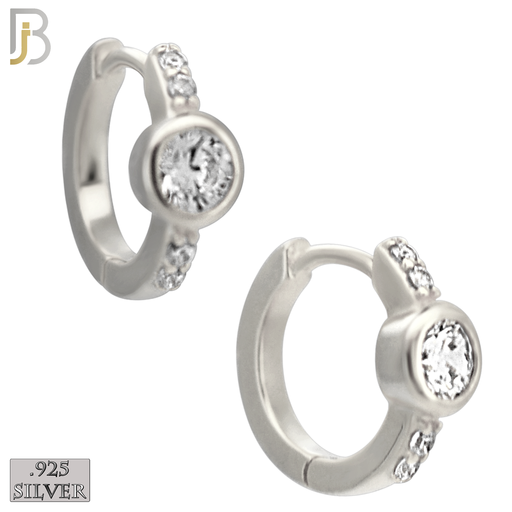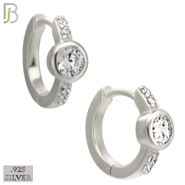 ES482 – 925 Sterling Silver Round CZ in Bezel Setting with Side CZs Huggies Earrings