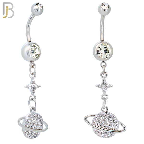 316L Stainless Steel Dangling Planet Saturn with Multi Zircon Belly Ring