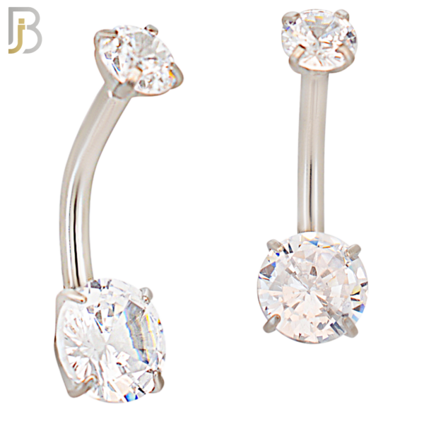 316L Stainless Steel Double Round Zircon in Prong Setting Belly Ring and 5mm Screw Ball (1.6 x 10 x 6cz x 4cz)