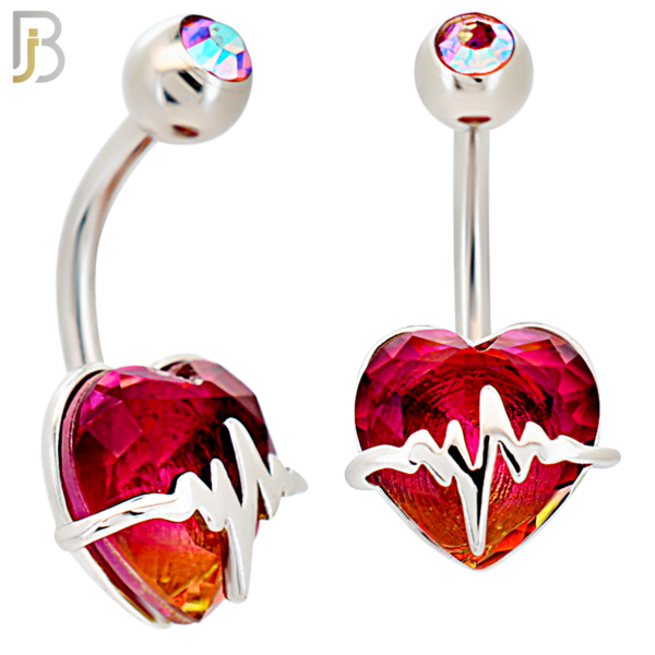 316L Stainless Steel Heart Shaped CZ and Horizontal Heart Beat Strap Belly Ring